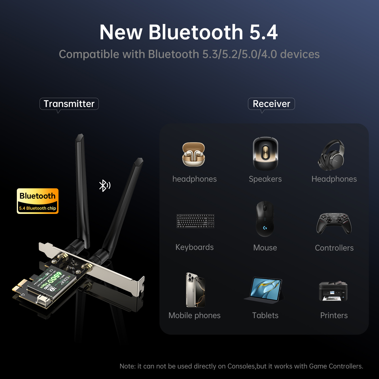 - The EP-BE9726 is a high-performance PCIe Full-Size wireless network card, designed for desktop PCs, industrial computers and embedded platforms. It supports Wi-Fi 7 (802.11be) and Bluetooth 5.4, delivering next-generation connectivity with ultra-low latency and excellent efficiency.