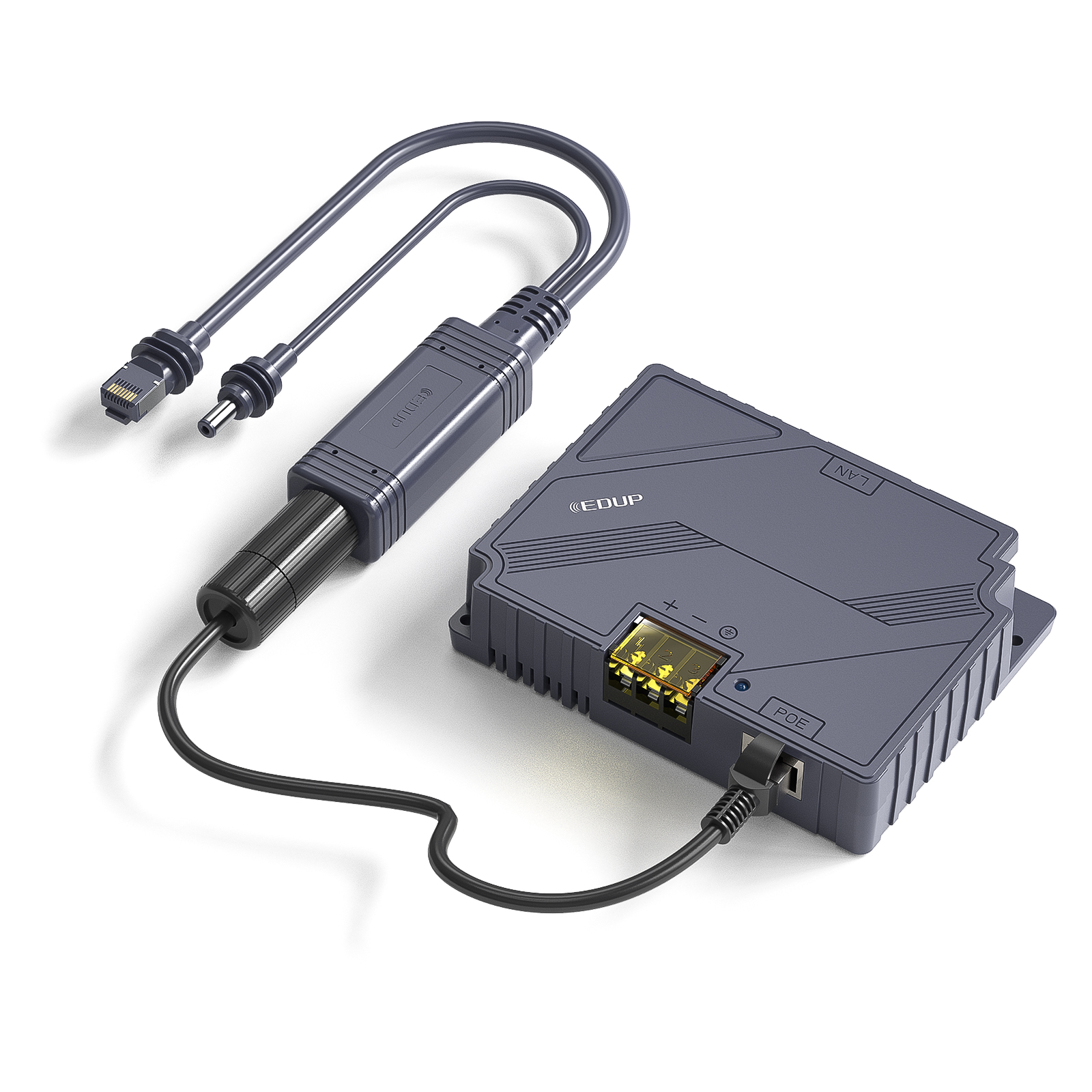 - EDUP EP-SK0076 POE Splitter supports gigabit network speeds of 10/100/1000Mbps and a transmission distance of up to 100 meters, making it ideal for long-range networking. It features a robust power output of 48V 2.5A Max, ensuring stable performance with Cat5e or higher cables. The device operates efficiently within temperatures of -25~+70°C and includes full-duplex & half-duplex communication modes, suitable for versatile applications.